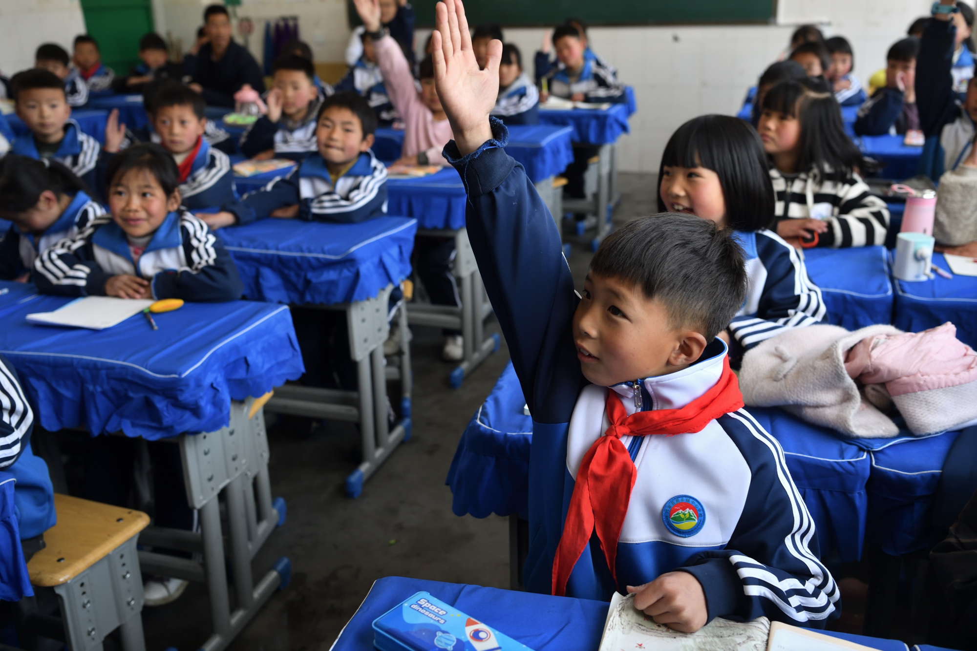 ▲药山镇中心小学的同学们在阅读课上与老师积极互动。摄影|陈逸航