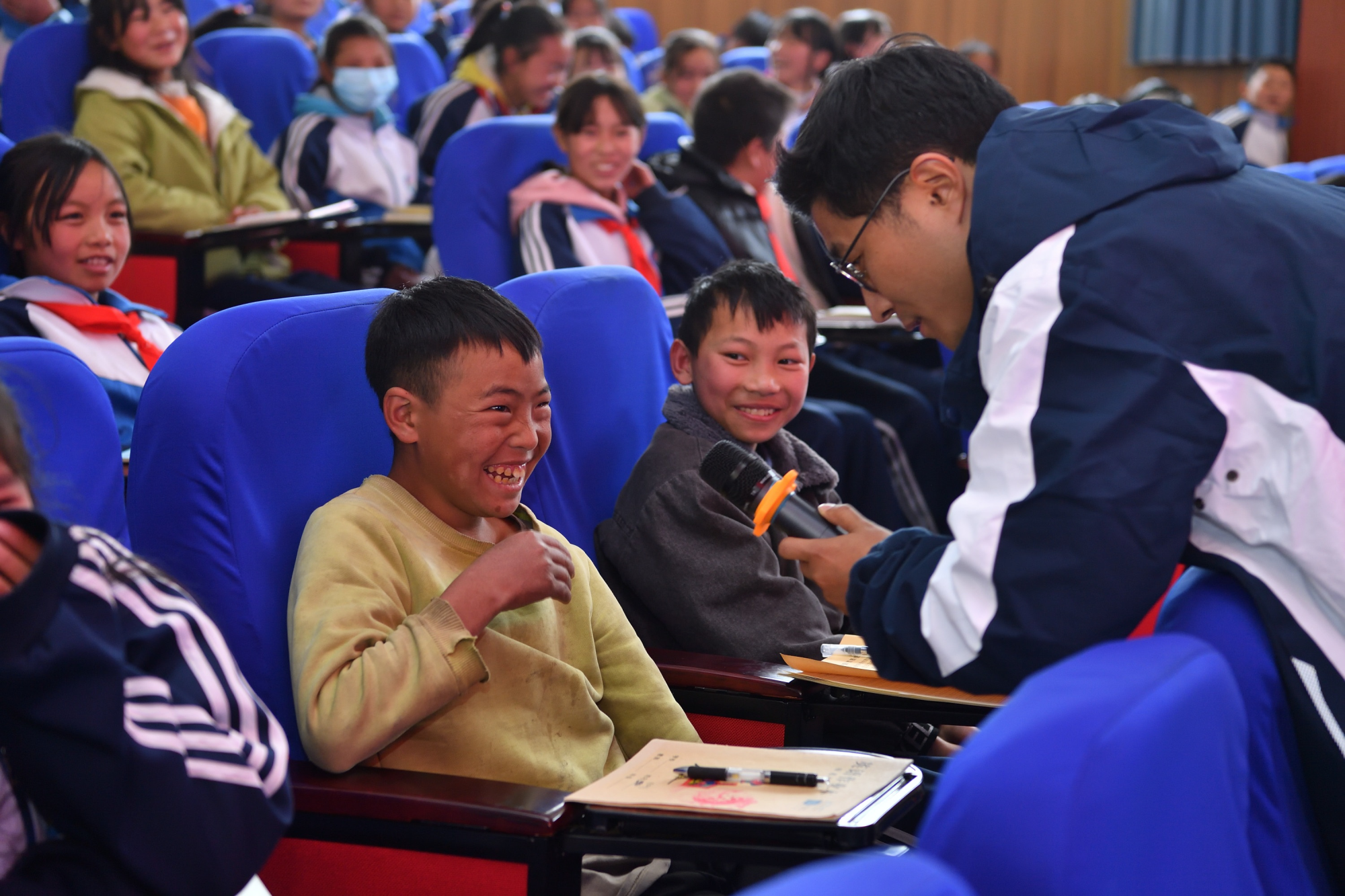 这是3月2日下午,发生在云南昭通药山镇中心小学报告厅的一幕。阅读专家王钢、知名科幻小说家江波、知名非虚构作家袁凌、南方人物周刊记者孙凌宇、南方周末文化版记者朱圆等,跟随拼多多与南方周末“为你读书”公益行动来到这里,为孩子们带来了多堂精彩的“阅读课”,同时为学校捐赠两个阅读室和5000多册图书。